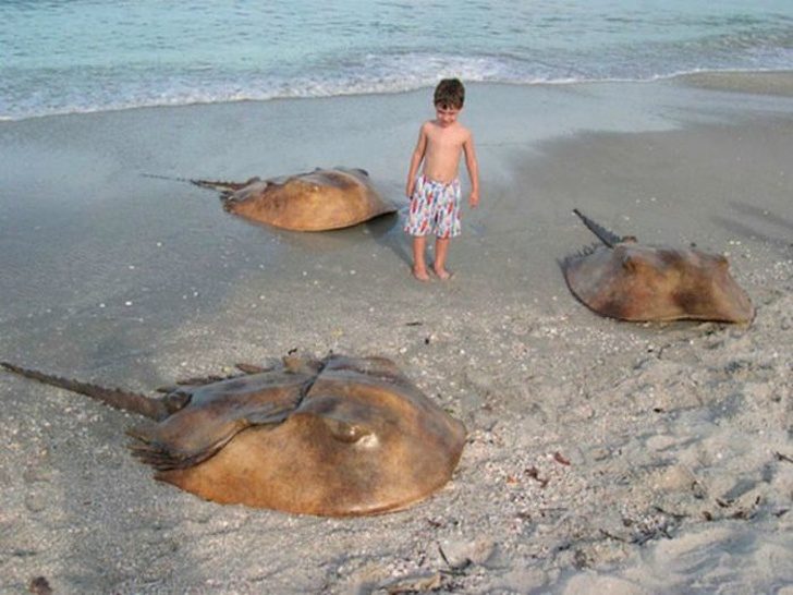 这些巨型鲎围绕着一个男孩。