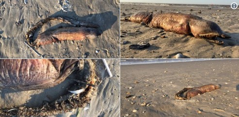 去年在德州,也有人在海滩上发现不明生物的尸体。
