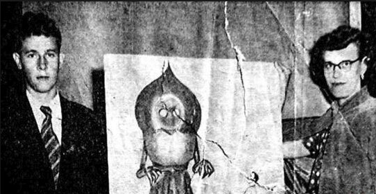 三人看见了如火球一样的发光物降落在贝里.菲沙农场上,他们非常惊讶,把事情告诉了大人,但大家将信将疑。不过还是去了孩子们所指的地方去查看,前去勘查有7人,还有莱蒙的狗,那只狗当时一直狂吠,好像见到了什么,人们看到狗叫的那个方向看见了一个奇怪的生物。头似黑桃状,身长3米,味道刺鼻,它从空中慢慢接触地面,所有人都闻到恶臭,人们的眼睛,鼻子都出现灼痛等症状,然后大家通知人们出现怪物了。