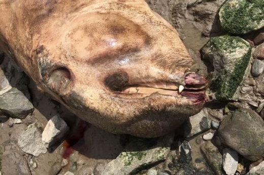英国利物浦梅西河(River Mersey)岸边日前发现一具奇怪的生物腐尸,该生物皮肤光滑、有尖牙并且没有眼睛。由于因尸体严重腐烂,所以科学家目前还无法断定这到底是什么生物,但推测很可能是鲸鱼或海豚等大型鱼类。