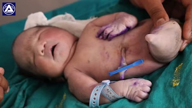 25岁妈妈坎伯(Disksha Kamble) 21日上午9点在印度西部马哈拉施特拉邦的一间公立医院进行生产,由于在怀孕期间没有积极产检,只有在怀胎8个月时进行过一次超音波检查,因此等到出生时才第一次看到宝宝的状况,宝宝除了双腿相连、生殖器消失,肾和肺部等器官也有畸形问题。