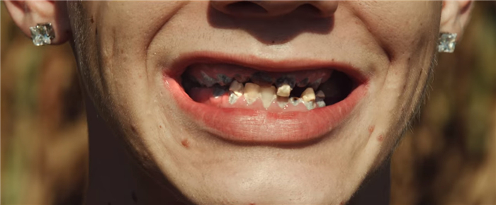 戴蒙还在拍片过程中,访问了不少摄取太多糖分的人,其中有个叫Larry的小朋友,从小就超爱喝汽水,平均一天要喝12罐。结果呢,他的牙齿就变成了下图这个样子。由于严重的牙床感染,医生甚至没办法帮他麻醉动手术。