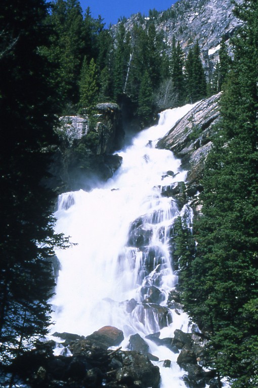 Hidden Falls位于喀斯喀特峡谷(Cascade Canyon)东端附近,是一道100英尺(30米)高的瀑布;Inspiration Point是徒步旅行的步道,可俯瞰珍妮湖(Jenny Lake)。