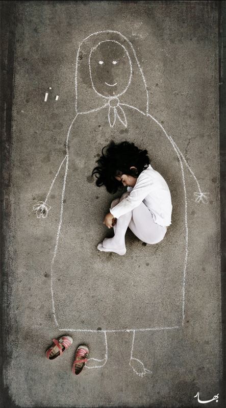 这张照片让很多人非常感动,因为正如许多人所想,这位失去父母的伊拉克女孩非常想念她的母亲,但是,其实这位女孩双亲健在,且他们住在伊朗,而不是伊拉克。女孩的堂兄Bahareh Bisheh表示他们只是在街上玩到累了,所以她才在用粉笔画画的地方睡着了。