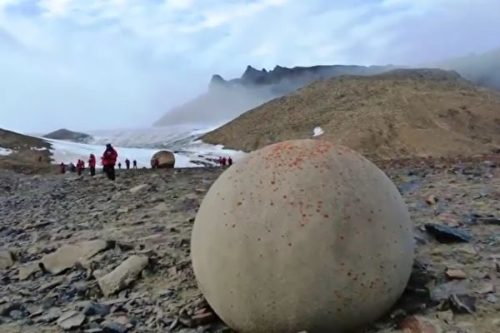 俄罗斯小岛神秘巨大石球。(视频截图)