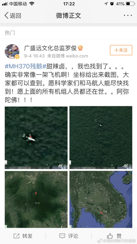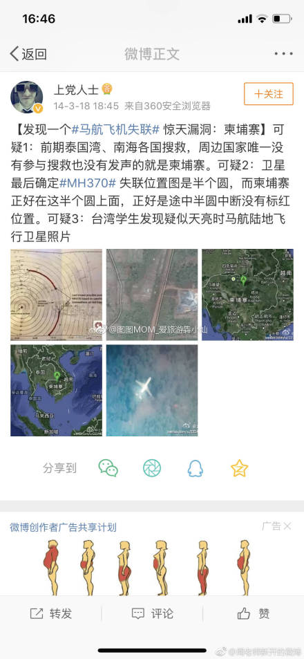 今天#MH370失联直播# #马航失事地点在柬埔寨#的话题突然屏刷了微博,有一个4年前的“预言”也被大家转载、评论。