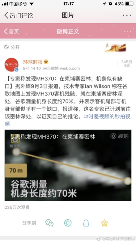 @只话桑麻:#马航失事地点在柬埔寨# 刚刚自己找了一下 真的有 不知道是不是掠影还是真的失事飞机
