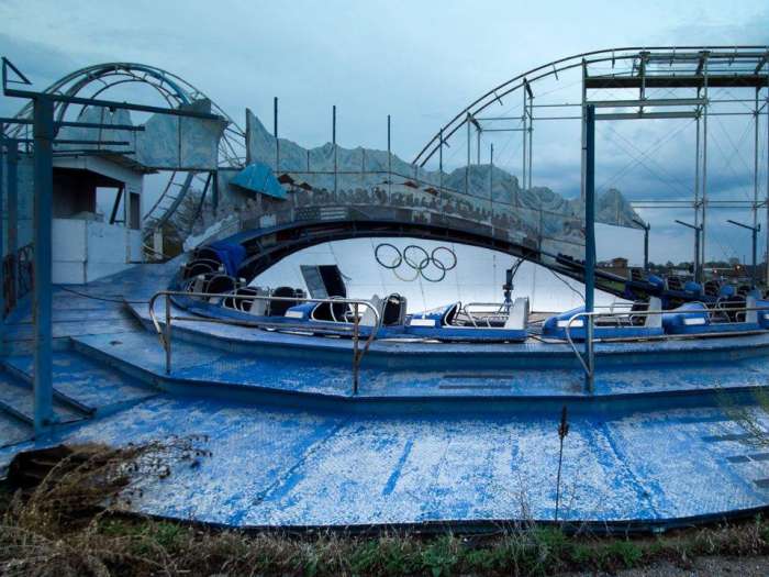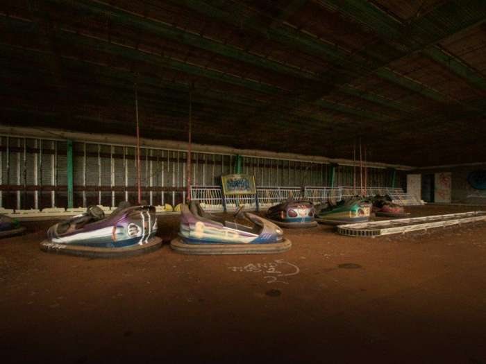 这座家庭经营的游乐园拥有独特的游乐设施,上图的马特宏峰飞车应该是模拟一场奥林匹克的雪橇比赛,但现在看起来就像是一个废墟中的竞技场。