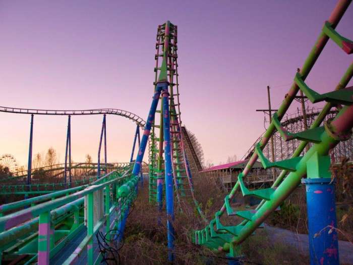 位于新奥尔良的六旗公园,是因为被卡崔娜台风摧毁后废弃的。至今,游乐园门口还挂着“因台风关闭”的字样。