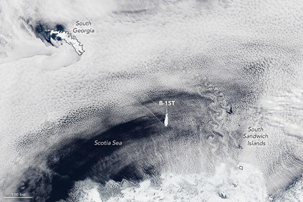 国际太空站的一名太空人在9月23日拍摄到B-15T的特写照片,当时它已经离开南冰洋,进入南乔治亚与南桑威奇群岛(South Georgia and the South Sandwich Islands)之间的海域。