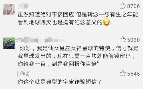 网友也纷纷发表自己的意见,“不回应派”的人认为,“如果只是一阵信号并不可怕,但若是同一信号源持久的发出,并且我们能接收到那才可怕”、“信号传来需要15亿年的时间,要么他们已经灭绝,要么他们已经进化到很厉害的地步”、“不应该用全人类的种族或者地球的毁灭作为承受代价”。但也有人表示,“虽然知道绝对不该回应,但转念一想,有生之年能看到地球毁灭也挺有纪念意义。”