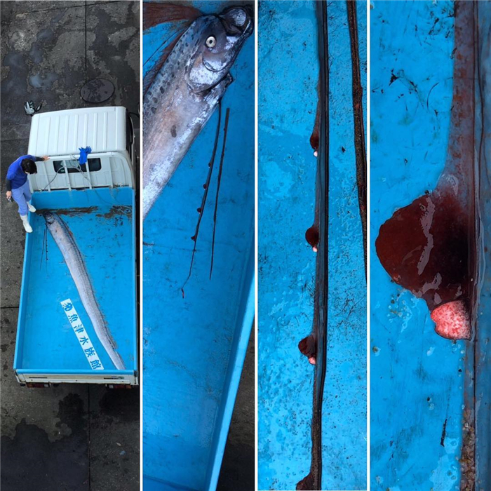 报道中指出,太平洋两岸从今年年初开始,突然频繁发现常到5.5米的“地震鱼”,先是在日本中部西海岸的富山湾发现6只,冲绳随后也捕获到2只,其他还有3只在日本全国各地北抓到;此外,韩国东北部海域也发现地震鱼的踪迹。