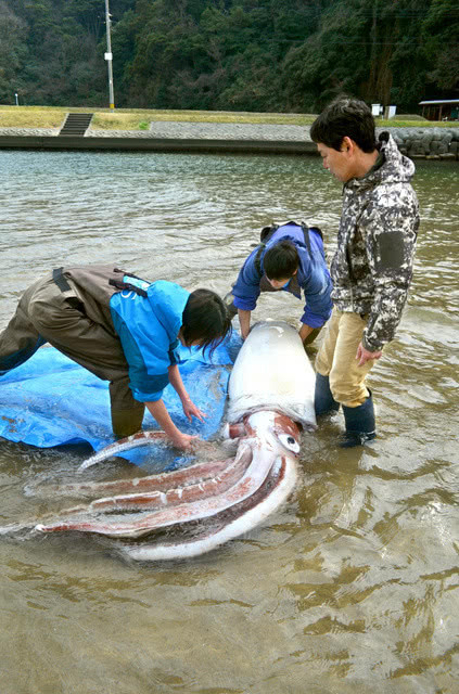 根据日本朝日新闻报道,滨田市一条河流中,有民众看见一只超巨大的乌贼,那只乌贼明显已经死亡,尸体漂流到岸上,不少民众看了都吓坏,赶紧通报相关部门前来捕捉。