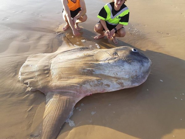 上周末,一条巨大的翻车鱼(Mola mola,又称太阳鱼)在澳洲南部的墨累河(Murray River)河口附近被冲上岸。它的体型庞大,长度约有1.8米,一度被误认为船只残骸。两名发现这条鱼的男子与它合照,而这些照片目前正在网上热传。