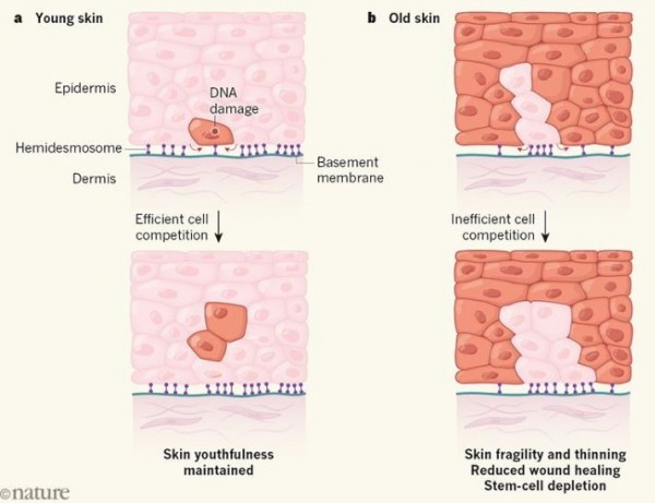 综合知名期刊《自然》与《法新社》报道,COL17A1蛋白质的作用就是鼓励细胞竞争,细胞之间的经过竞争会让较弱的细胞遭到“驱逐”,有利于较强的细胞的复制。任职于东京医科大学干细胞生物学系,同时也是该研究负责人的西村教授(Emi Nishimura)表示,“在我们的皮肤之中,受损的干细胞每天可以经由完整的干细胞被选择性的消除。”