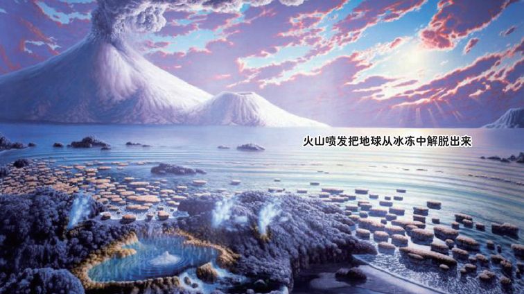 地球的当务之急是让自己从冰冻中解脱出来,完成这一任务的第一功臣当属二氧化碳。在冰封时期,大气中二氧化碳的浓度并不是很高。不过,地球被冻住以后,各地的火山依然定时喷发(地核内部并不会受到地表冰封的影响),沉积到海底的二氧化碳被大量释放出来。这样,经过3亿年的积累,大气中二氧化碳的浓度越来越高,温室效应也越来越强。最终使冰原开始融化。
