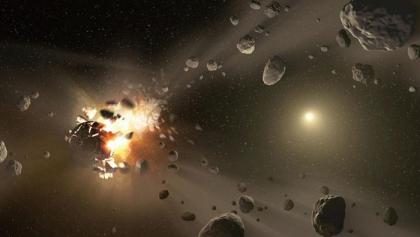 来,让我们来到地球诞生之初,那个混沌初开的时刻。那个时候的太阳系正经历着剧烈的阵痛——数量众多的岩质小行星、冰彗星及各种小碎块横冲直撞,所有的行星都饱受撞击,新生的地球也无从逃避。