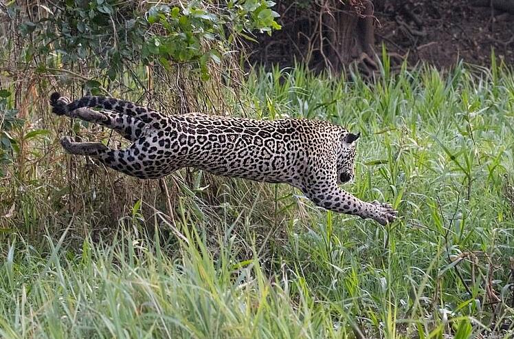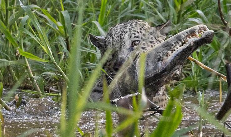 大自然生物都要靠自己猎捕粮食,适者生存的环境很残酷。最近美国一名野生动物摄影师多利(Kevin Dooley)到巴西工作,直击美洲豹跳入河里和鳄鱼大战,没想到最后是鳄鱼被吃掉,让他十分意外,更幸运地拍下难得的掠食画面。
