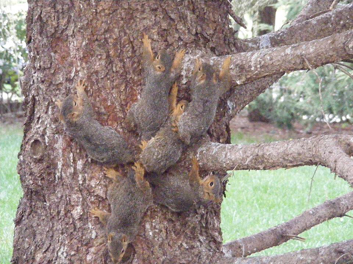 如果看到图片上的这种情况,大部分的人应该都会觉得非常特别,而且觉得很可爱吧?松鼠家庭以一种奇怪的方式聚在一起,虽然不知道为什么,但一定觉得很酷!不过其实这个情况是它们需要帮助,因为它们的尾巴打结了!