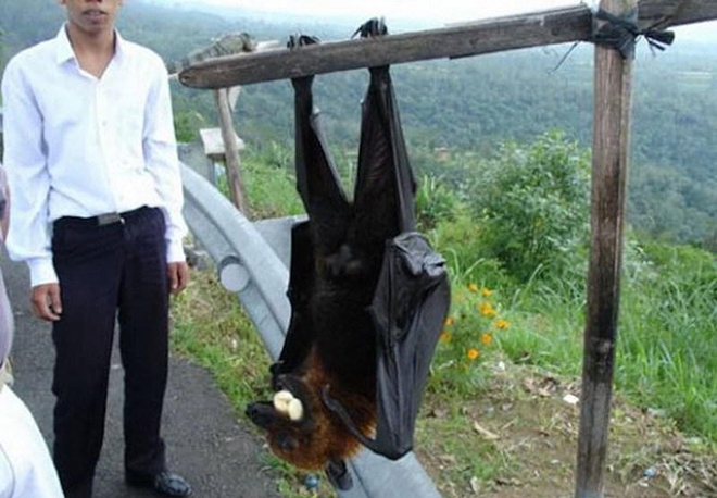 如图所示,这种蝙蝠叫做俾斯麦狐蝠,生活在新几内亚,这种超大体型蝙蝠令人感到恐惧。