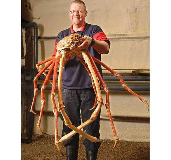 日本蜘蛛蟹会让人感到震撼,它拥有螃蟹家族中最长的腿部跨度,可达到3.8米,其体重达到19公斤。