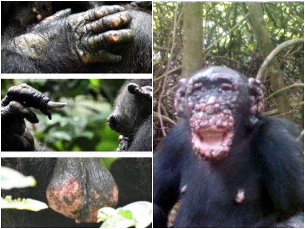 研究论文也曝光了惊人的照片,这些感染汉生病的黑猩猩们都出现了与人类晚期患者极为类似的症状,包括神经系统、呼吸道、皮肤与眼部长出肉芽肿或组织病变,也有黑猩猩出现爪形手、四肢溃烂或末端缺损的严重症状。