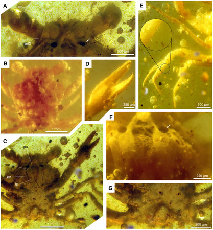 1亿年前的琥珀里发现完整螃蟹。(图Science)