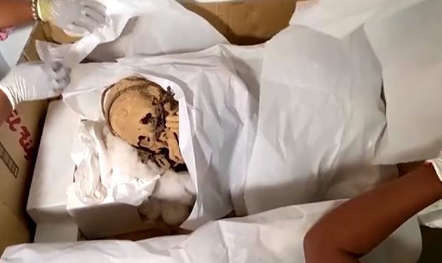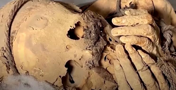 近日秘鲁的考古团队在一处遗迹中,发现一具约有800年历史的木乃伊,呈现侧卧、蜷曲的姿势,双手还举起遮住脸部,据考古学家指出,这是当地墓葬文化的特征之一,另外他们也在木乃伊的坟墓中,找到一些像是陶瓷、蔬菜遗骸等供品。