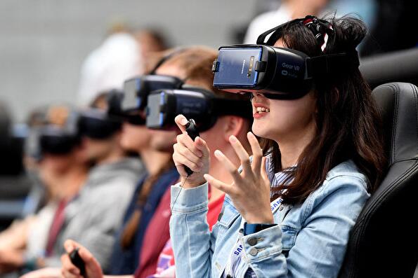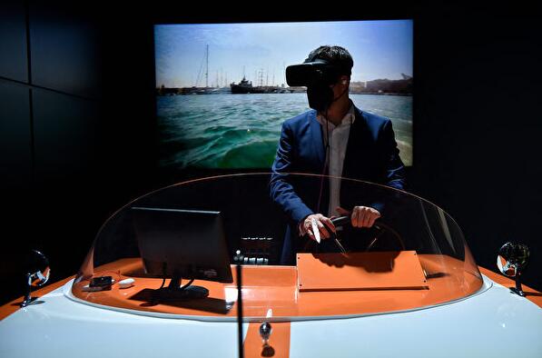 将大部分社会活动转移到电脑主机中来进行,是人类的出路还是不归路?图为2021年6月28日巴塞罗那世界移动通信大会展上,一名男子试戴虚拟现实眼镜航行。(Pau Barrena / AFP )
