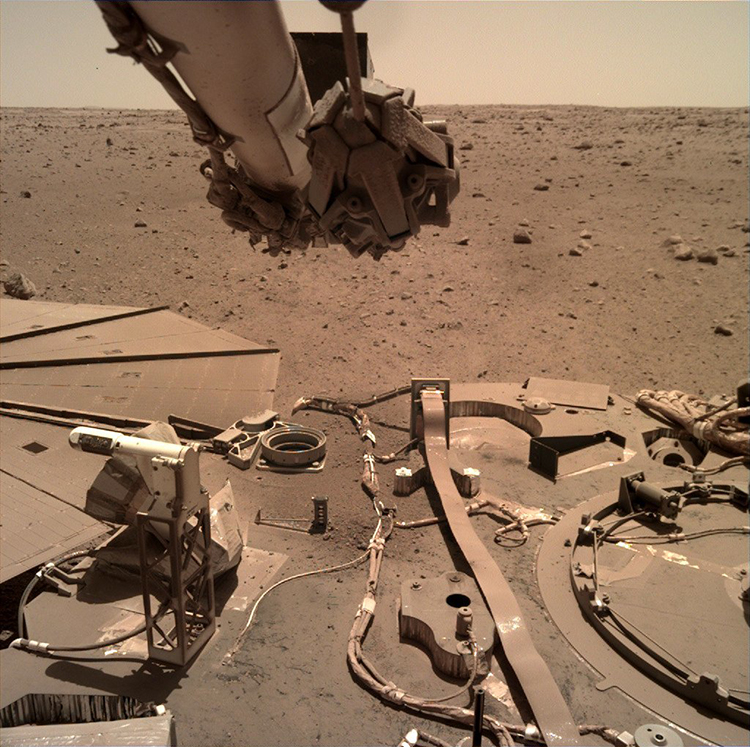 洞察号于2018年5月5日从地球出发,六个月后登陆火星。其主要任务是探测火星内部的构造。在拍摄最后这张自拍照之前,洞察号已经在火星上度过了1,211个日夜,探测到了1,300多个火星上的地震信号。
