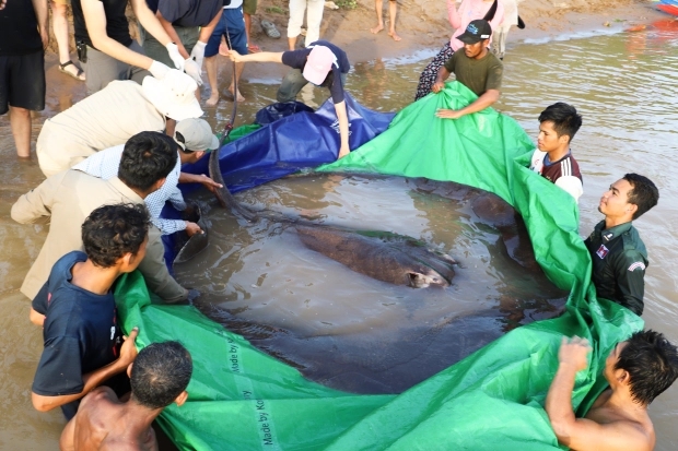 42岁渔夫穆尔图恩(Moul Thun)于本月13日晚间,在上丁省会(Stung Treng)附近湄公河上的閤西岛区域,捕捉到一只体型极其巨大的魟鱼,于是在隔天清晨联络美国国际开发署(USAID)旗下计划“湄公河奇观”(Wonders of Mekong)的研究人员。