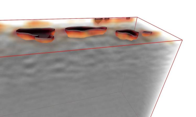 厄本使用新颖的探地雷达技术对两组可见脚印中的一组进行探测,这是一种非侵入性的调查地表下层的方法,结果发现了更多肉眼看不见的脚印。