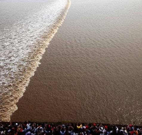 公元1342年,江苏省泰兴县(现在泰兴市)内,千万年从未断流的长江水一夜之间忽然枯竭见底,次日沿岸居民纷纷下江拾取遗物。突然江潮骤然而至,淹死了很多人。1954年1月13日下午4时许,这一奇怪现象在泰兴县再度出现。当时,天色苍黄,江水突然出现枯竭断流,江上的航轮搁浅,历经两个多小时,江水汹涌而下……