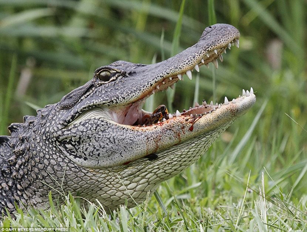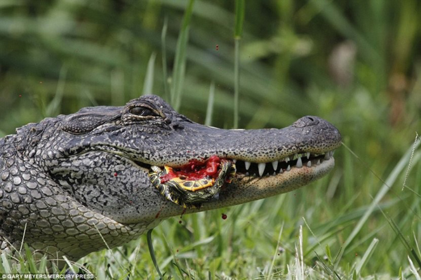 咦,等等,鳄鱼的嘴里有东西!仔细一看....那不是一只乌龟吗?!没错,摄影师盖瑞遇到的,正是鳄鱼捕食乌龟的画面。路易斯安那州是全美最多鳄鱼的州,而鳄鱼除了会吃乌龟、蛇、水鸟等等动物外,连浣熊和鹿都吃!
