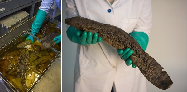 德雷塞尔大学的自然科学博物馆还有宝物,还有很多装在玻璃罐子里神奇标本,这是河马的大脑标本。“这可是一件老古董。”Ted Daeschler馆长说到。这件标本是1890年代费城动物园一位兽医的收藏。