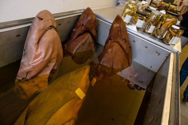 北卡罗来纳自然科学博物馆(North Carolina Museum of Natural Sciences)收藏保存了很多鲨鱼头,鱼类馆的馆长Alex Dornburg告诉我们,他也不知道为什么捐赠者送来的只有鱼头。
