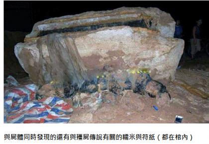 文物局的人都赶到了现场,却是“毫不犹豫”的就烧了尸体。可见此古尸南确实是僵尸!古尸虽非价值连城,但其文物价值和医学价值非凡,国外对古尸惜若珍宝,文物局的人会不知道?就算在我国,古尸也是弥足珍贵的文物,说烧就烧?其中的猫腻,明眼人一看便知,无需多说……与尸体同时发现的还有与僵尸传说有关的糯米与符纸(都在棺内)……