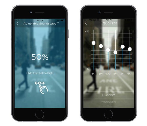 这些耳机上有一个外部麦克风来模拟你的自然听力,在app上有个功能让你控制把多少周围噪音叠加到你的音乐上,而理由是?安全。