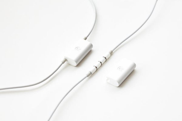 耳机后面有连接在耳机线上的外部电池夹,能把电池寿命延长到14小时。“无线耳机的挑战是把尽可能多的电子器件和电池寿命塞进小机壳里,而且要做得尽可能优雅,”Cohen说,“我们做了很多创意性的电路布局,起初我们企图把所有东西都塞进一块非常小的板子——然而那是不可能的,然后我们又想出了若干主意。我们结合几种有硬有软的材料,你就能掰弯板子——实质上就好像两块板子只占一块的空间,然后我们又做了这个夹在耳机线后面的电池扩展器。”