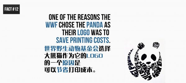 12,WWF选择大熊猫作为他们的LOGO原因之一是因为这样可以节省打印成本。