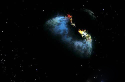 直径10公里以上的小行星的坠落将足以冲破地壳,引起全球各大洲分布图的重组。地球就像一个液体的球,上面覆盖着薄薄的一层只有20公里厚的硬壳。对这样的球,任何一下猛烈的打击都会导致它的碎屑四散飞溅到宇宙中。
