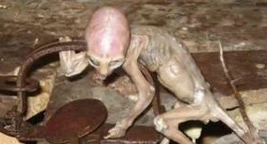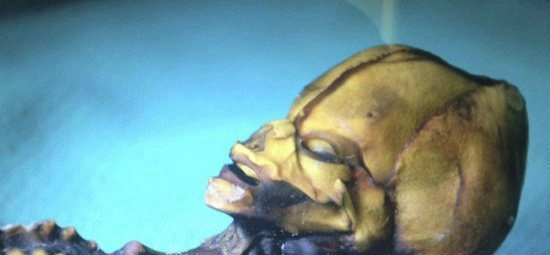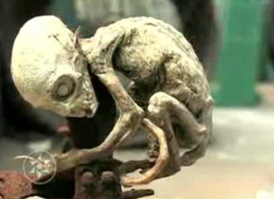一艘苏联太空探测船拍到一张显示银色物体的照片,经电脑影像处理,断定是一具外星人的“木乃伊”。照片显示出“木乃伊”的胸部和手臂上挂满星状的徽章,头戴巨型头盔,上面有两条延伸至背部的长管。