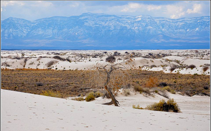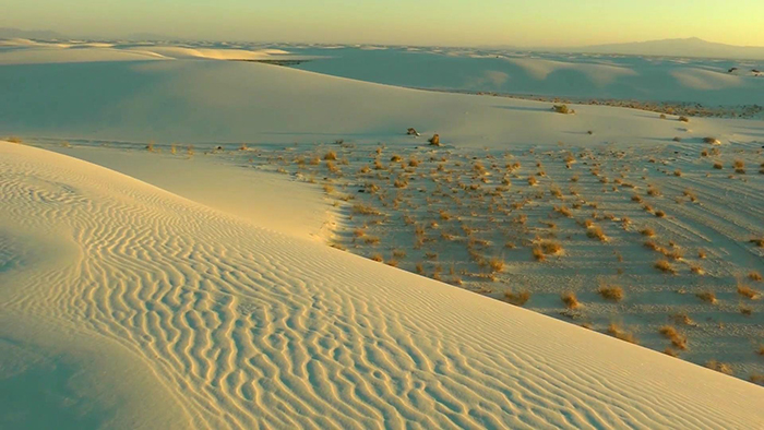 科学家最近在新墨西哥州白沙国家保护区(White Sands National Monument)利用新的雷达设备,探测到了被覆盖在白沙下面一万多年前的一些脚印。