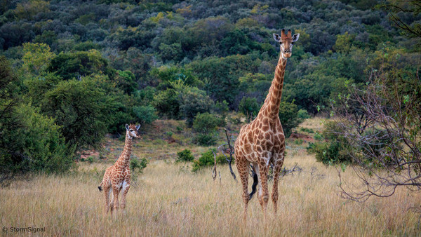 母长颈鹿站着生宝宝,小鹿一生出来就有180公分高,出生几小时后就可以奔跑。