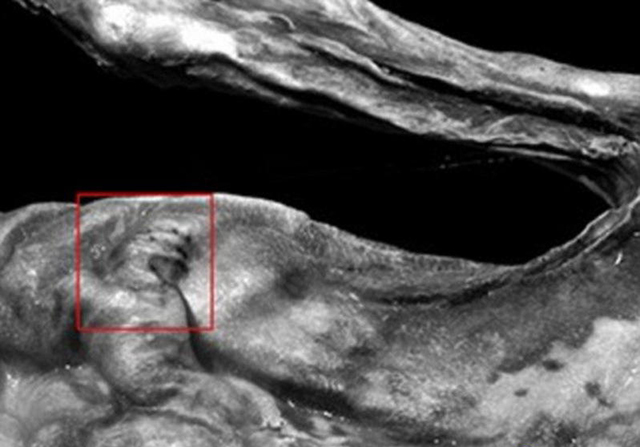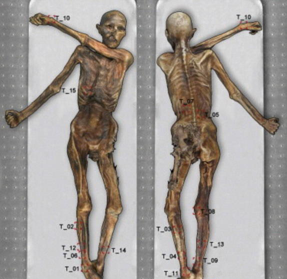 意大利一支研究小组使用特殊镜头捕捉不同波长光线,他们能够探测到最模糊的黑线条纹身,近期研究发现冰人奥兹右侧脊肋下侧有一个4条细黑线构成的新纹身图案。