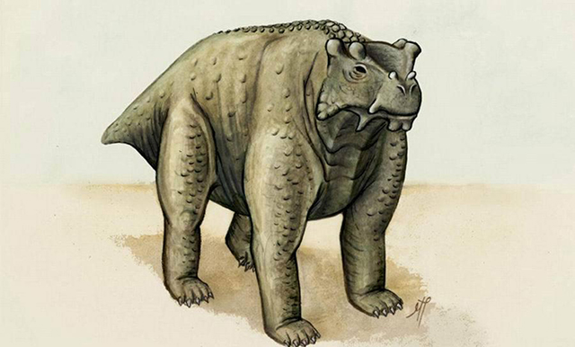 阿科坎瘤头龙:阿科坎瘤头龙生活在2.6亿年前,它的外型颇似犀牛和蜥蜴的杂交体,体形接近牛。不同于当时在地面上四肢伸开爬行的动物,阿科坎瘤头龙的四肢能够直立行走。直立行走能够有效节省运动能量,是资源短缺时期的一个重要适应性。