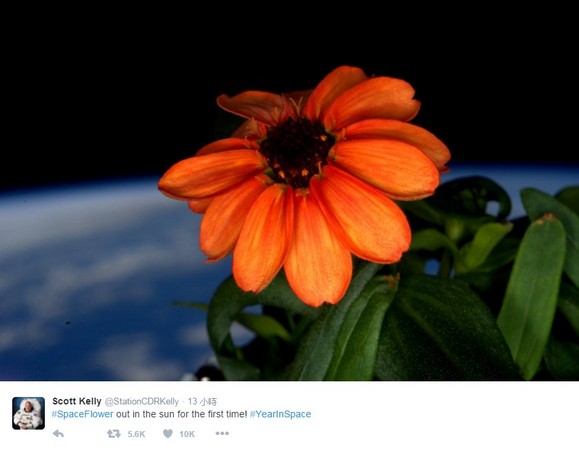 ▲太空人在推特上发文,庆祝人类种出第一朵太空花!
