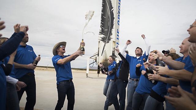 2015年11月24日,新谢泼德火箭成功着陆后,蓝色起源的工作人员一片欢呼