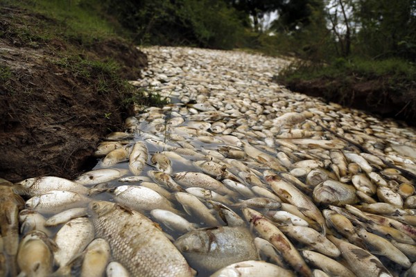 巴拉圭的阿耶斯镇(Villa Hayes)的孔富索河(Confuso River)一夜之间出现数千条死鱼,放眼望去河道浮满“翻肚”鱼尸,而且还混杂了不同物种。是否与河水受污染有关,目前尚未能确认;但有专家推测,可能与河水含氧量减少有关。