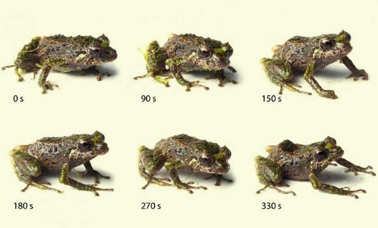 变形雨蛙:它是生活在厄瓜多尔的一种可以“变形”的青蛙,它的学名是Pristimantis mutabilis,科学家认为它是迄今发现第一种具有变形能力的两栖动物。